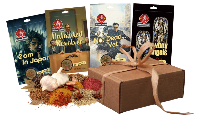 “This four-blend collection is incredible! 2 AM in Japan delivers umami-rich, citrus-bright depth, Unloaded Revolver adds smoky, spicy boldness, Not Dead Yet provides dark, smoky, tangy complexity, and Cowboy Angels brings bold, cheesy, herb-forward layers—perfect for home chefs and food lovers.
