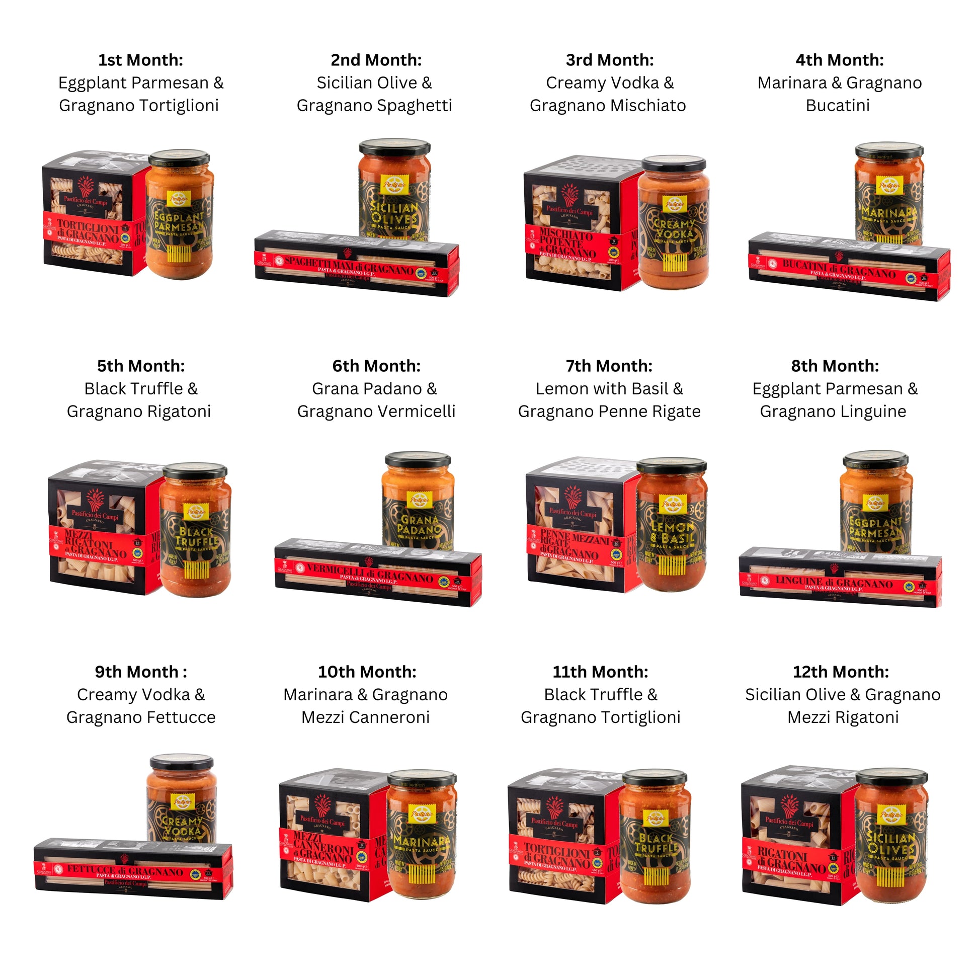 -One artisanal Italian pasta (bronze-extruded and slow-dried for perfect texture) -One handcrafted specialty sauces (crafted with premium ingredients)